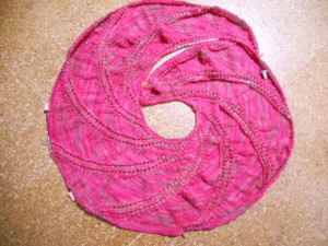 Wirbel 高さが23cmくらいになりました。長さは260cmくらいあるので輪針2本にして広げて写真を撮ってみま
